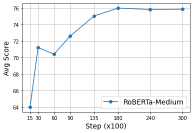 | RoBERTa-medium (ours) | 83.6 | 82.7 | 89.7 | 89.0 | 79.7 | 80.1 | 89.3 | 31.0 | 57.4 |