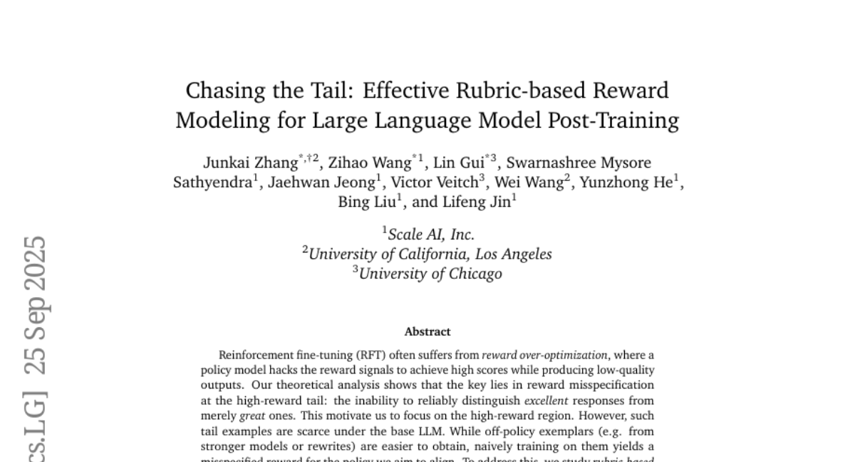 Chasing the Tail: Effective Rubric-based Reward Modeling for Large Language Model Post-Training