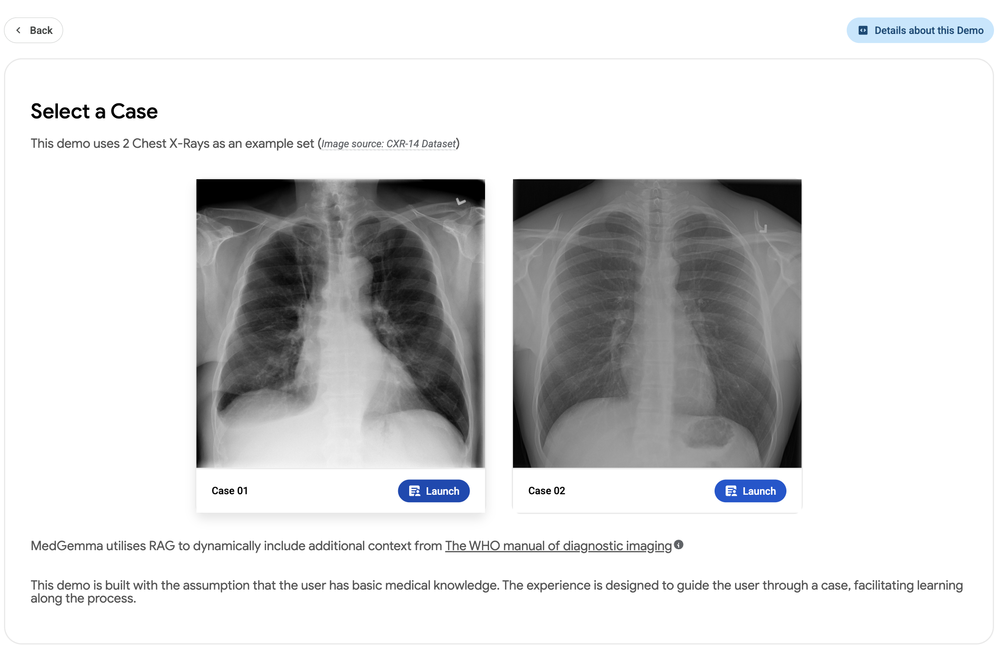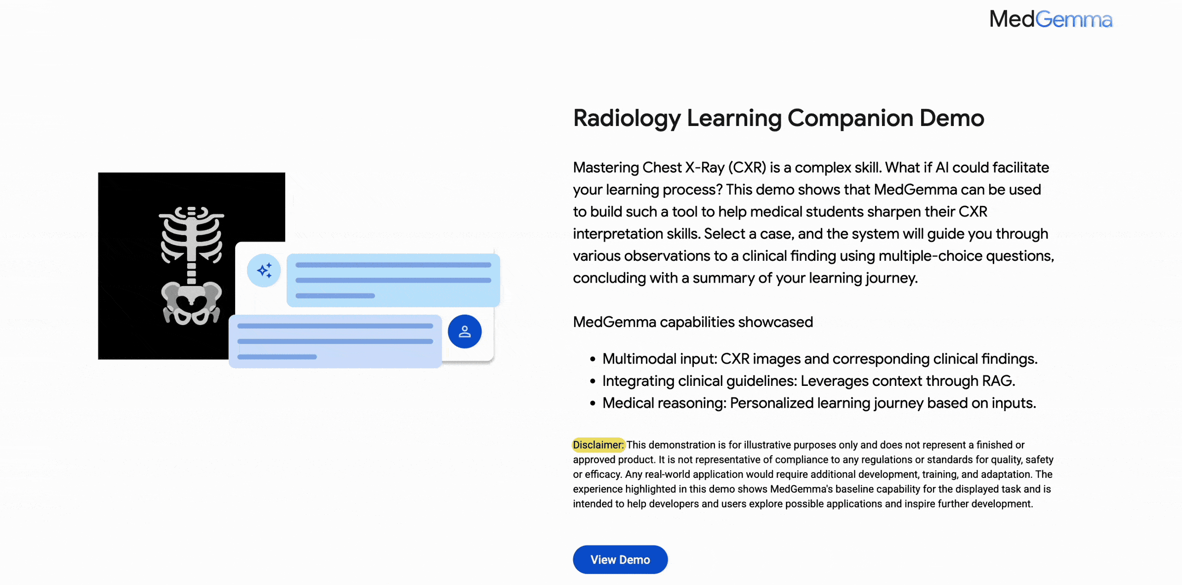 A demo showcasing a medical learning experience of CXR image
