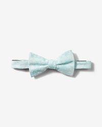 A light blue bow tie with a satin finish and a simple bow shape is displayed against a white background. The bow tie has a small knot at the center and is positioned with the ends hanging down.