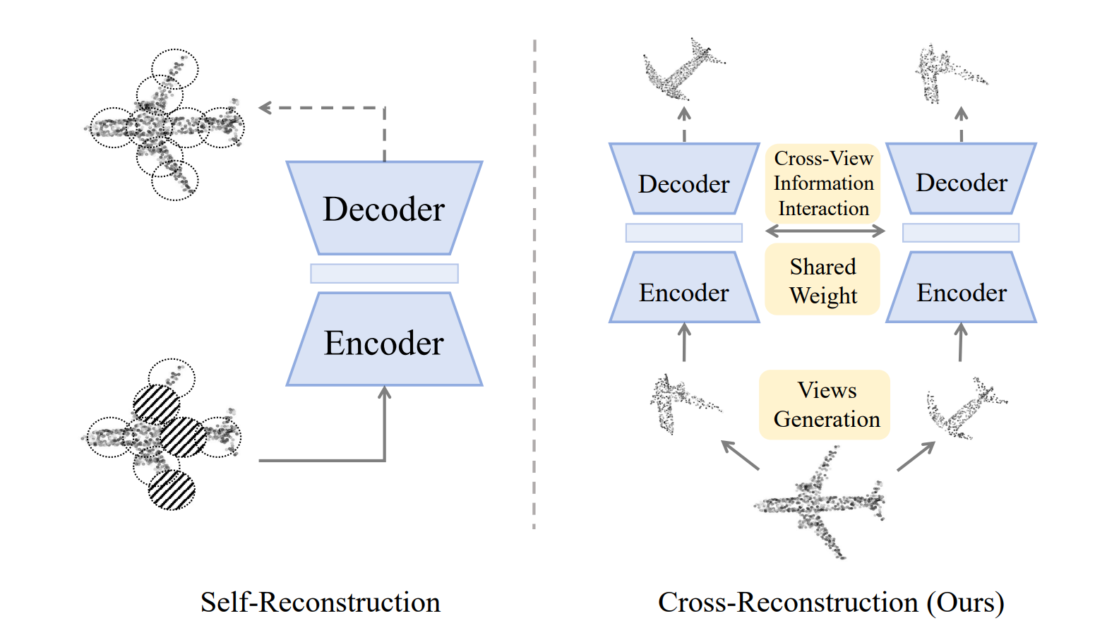 Towards More Diverse and Challenging Pre-training for Point Cloud Learning: Self-Supervised Cross Reconstruction with Decoupled Views